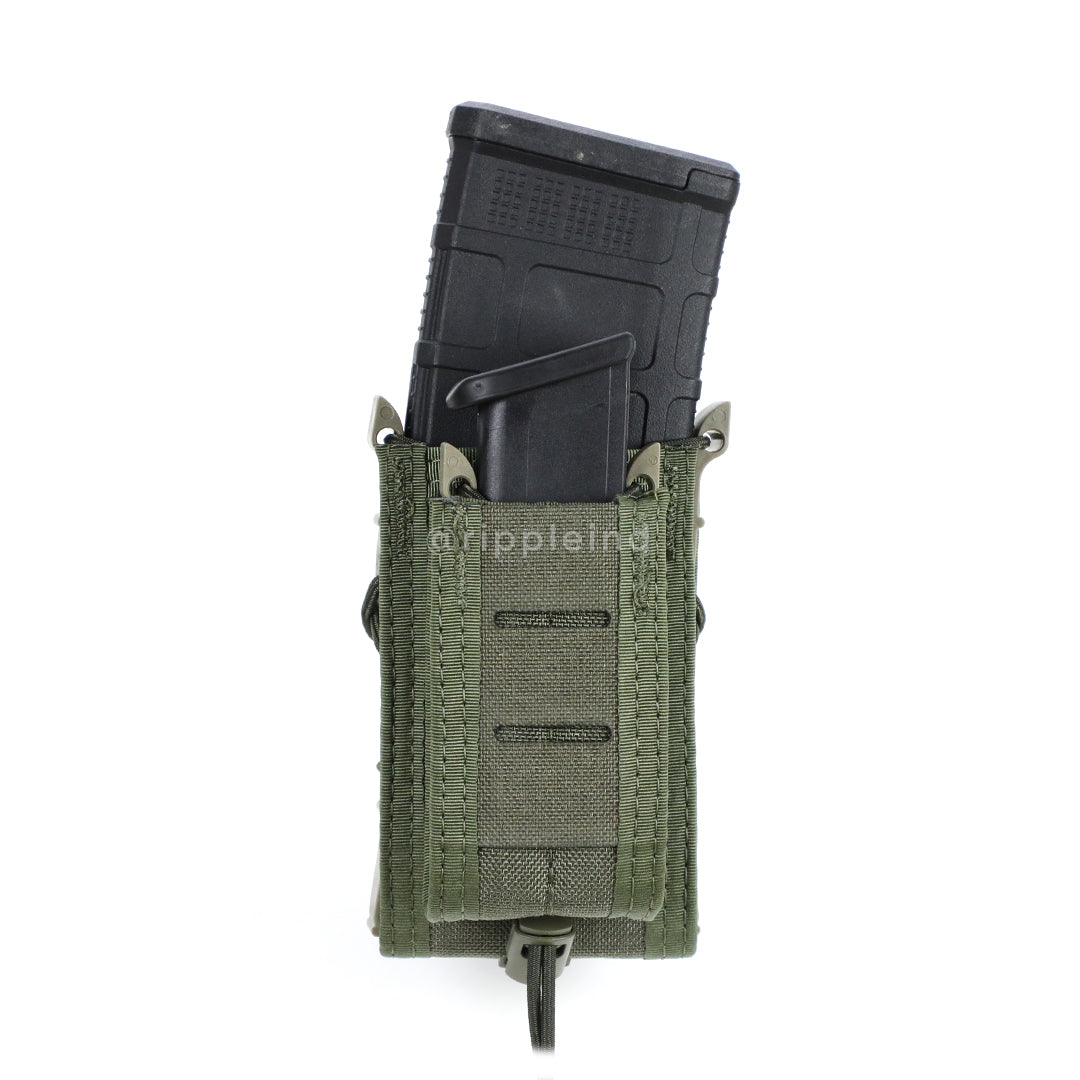 Duty line of TACOs® functions the same as the originals, but feature sleeker fronts and hidden bungee, which is woven internally. This staggered pouch will hold most rifle caliber magazines, radios, shotgun shell trays, flash bangs and more.