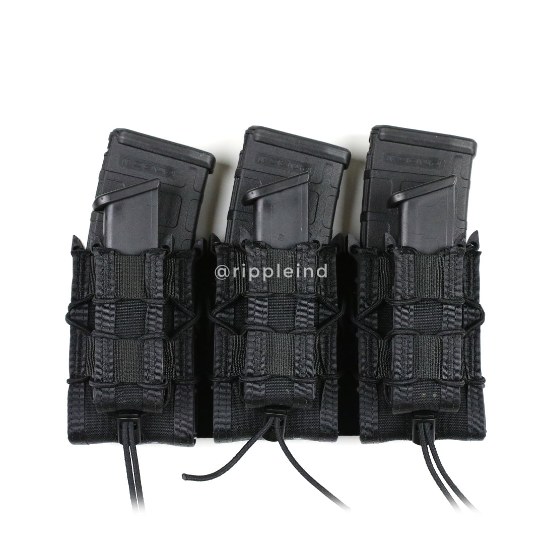 This MOLLE shingle will keep up to 3 rifle and 3 pistol magazines secure and readily available.  The three Double Decker pouches are permanently secured to a laser cut laminate base ensuring easy and stable mounting on any PALS platform, such as vests, plate carriers and battle belts.  Each Double Decker can hold almost any combination of magazines, HSGI Shot Shell Trays, flashlights, multitools and many other similar sized items.