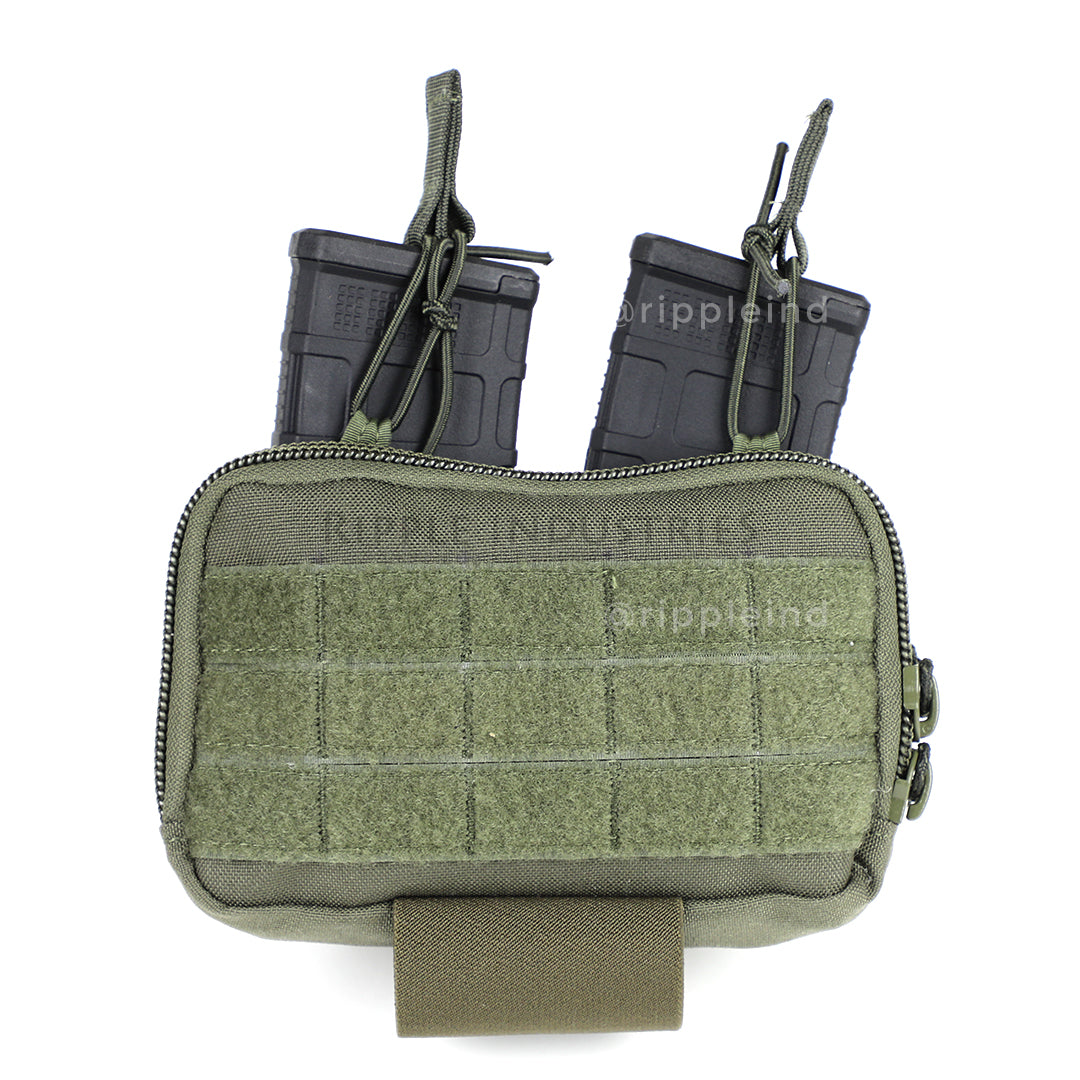 This horizontal admin pouch is a new take on our old favorite, the Mini Modular Admin Pouch, and is constructed from 1000D Cordura® laminate. The two rear slots with bungee retention tabs are perfect for two .308 magazines or smaller.